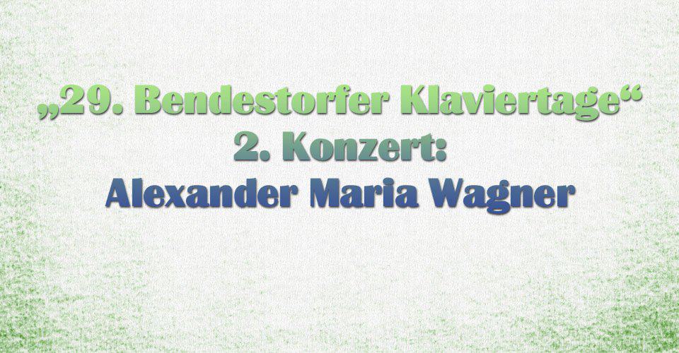 Das Bürger- und KulturForum Bendestorf veranstaltet die 29. Bendestorfer Klaviertage im Makens Huus in Bendestorf. Am 31. August 2018 findet das 2. Konzert mit dem Pianisten Alexander Maria Wagner statt.
