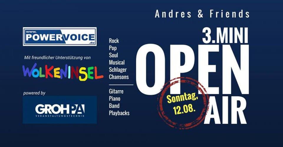 | FreeAm 12. August laden Andrés & friends zum 3. MINI OPEN AIR in Harmstorf ein. Es wird eine bunte Mischung aus Rock, Pop, Soul, Musical, Schlagern und Chansons geben.
