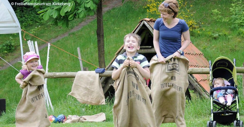 Lebensfreude und Neugier erfüllen das Museumsgelände: Ob in den historischen Gebäuden oder draußen auf den Freiflächen – überall gibt es Spielstationen zum Mitmachen. Kinder und Erwachsene versuchen sich an alten und modernen Spielen, die Beweglichkeit, Geschicklichkeit, Konzentration, Kreativität oder Gemeinschaftssinn verlangen. Es ist für jeden etwas dabei: Sackhüpfen, Eierlaufen und Himmel und Hölle. Großeltern entdecken alte Spiele ihrer Schulzeit wieder und spielen mit ihren Enkeln Schiffe versenken im Klassenzimmer der Landwirtschaftsschule.