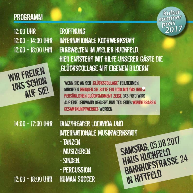 Das Kulturfest findet am Samstag, den 5. August 2017 im Haus Huckfeld statt.