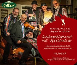 | 45,90€Zu Weihnachten tritt die SkiffleBand unter dem Namen Appeldwatsch für ein ganz besonderes Weihnachtskonzert im Landkreis Harburg auf