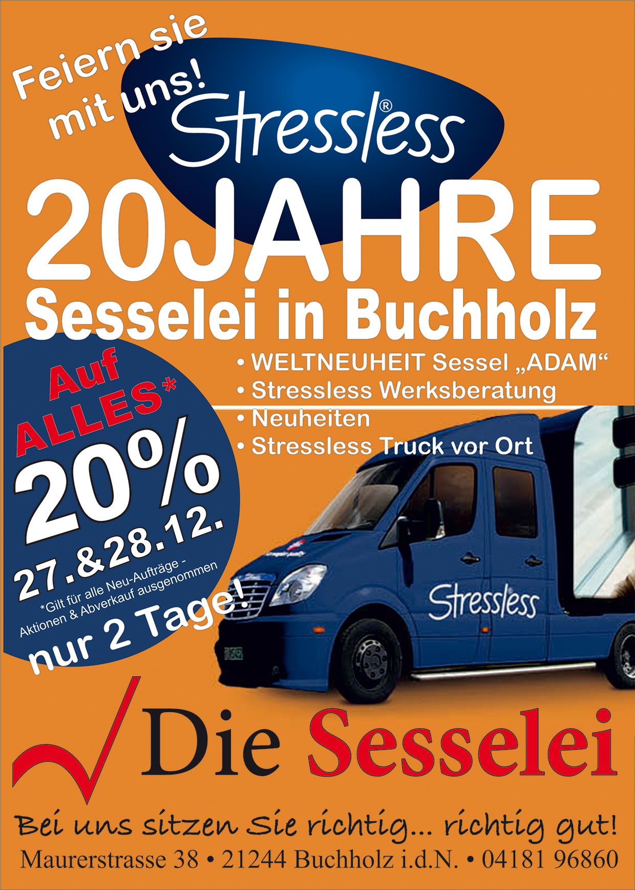 Stressless präsentiert den neuen Stressless Adam direkt vor Ort in Buchholz im Landkreis Harburg. Die Sesselei feiert 20 Jahre Jubiläum und gibt 20 % Rabatt*