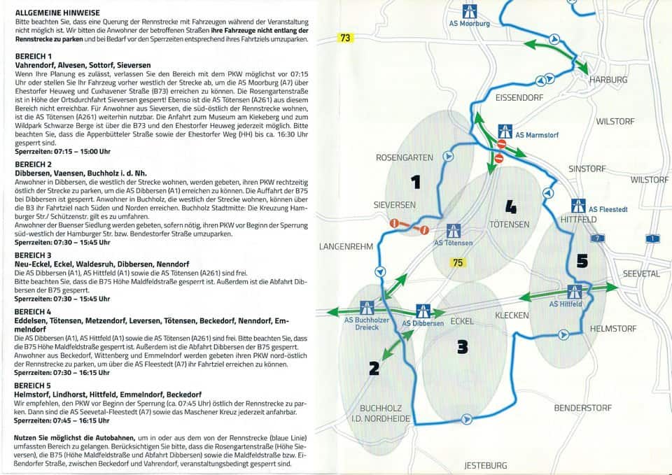 Am Sonntag, den 13. August 2017 findet der IRONMAN Hamburg statt. Der Landkreis Harburg ist das Herzstück der Radrennstrecke. Auf der u.g. Abbildung sehen Sie welche Straßen im Zeitraum von 7.15 – ca. 16.30 Uhr gesperrt sein werden. Ein Befahren oder Queren der gesperrten Strecken mit dem PKW ist in diesem Zeitraum nicht möglich!