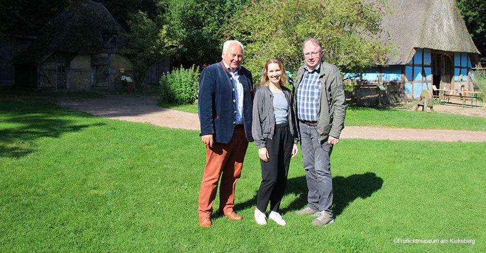 Die Plattdeutsche Sprache in den Alltag bringen – so lautet der Ansatz der Plattdeutsch-Koordinatorin Rike Henties. Dazu sind Podcasts ideal: Man kann sie in jeder Situation hören, ob in der Bahn oder im Auto, beim Kochen oder sogar im Bett. „Wir nehmen die Podcasts nicht nur zum Hören auf, sondern filmen das Gespräch mit und unterlegen das Ganze mit schönen Bilder vom Kiekeberg“, erzählt Rike Henties. „So kann jeder, auch wenn er kein Plattdeutsch kann, etwas verstehen und sich in die Sprache reinhören.“ Informationen gibt es noch dazu, zum Beispiel, wie sich der Umgang mit der Regionalsprache verändert hat. Für Heiner Schönecke, heute Mitglied im Niedersächsischen Landtag und Vorsitzender des Fördervereins des Freilichtmuseums am Kiekeberg, war sie Muttersprache: „Erst kurz vor Schulbeginn habe ich von einem einquartierten Flüchtling Hochdeutsch gelernt. Man könne den Jungen doch so nicht in die Schule gehen lassen“, schmunzelt Heiner Schönecke heute. Rudolf Meyer, stellvertretender Landrat im Landkreis Harburg, schnackt auch im Kreistag als Vorsitzender op platt und „alle verstehen mich gut“. Genau hier setzt auch Rike Henties an: Plattdeutsch in den Alltag bringen, ein Gefühl für die alte Sprache vermitteln und Lust auf mehr zu schaffen.