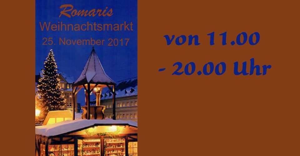 Romaris Steller Straße 1, 21220 SeevetalAm 25. November stimmt das Romaris in Holtorfsloh mit seinem vorweihnachtlichen Marktgetümmel auf die Weihnachtszeit ein. Es erwartet Sie weihnachtliche Stimmungsmusik, Handwerks- und Fotografiekunst, Weihnachtsdeko und kulinarische Leckereien.