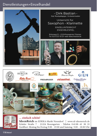 IdeenReich im EDEKA-Markt Nenndorf | www.id-ideenreich.de Eckeler Straße 7 · 21224 Rosengarten · Telefon 0 41 08 - 41 38 33 Geö net: Montag bis Freitag 9.00 - 19.00 und Samstag 9.00 - 18.00 Uhr