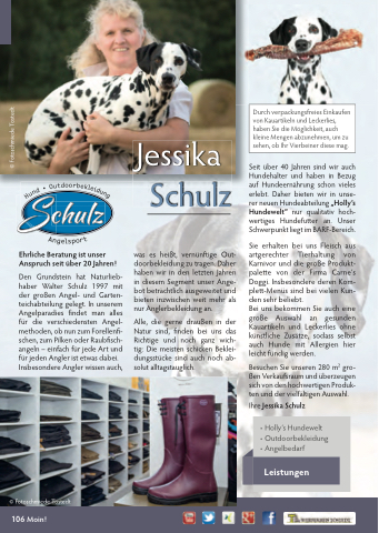 Seit über 40 Jahren sind wir auch Hundehalter und haben in Bezug auf Hundeernährung schon vieles erlebt. Daher bieten wir in unse- rer neuen Hundeabteilung „Holly’s Hundewelt“ nur qualitativ hoch- wertiges Hundefu er an. Unser Schwerpunkt liegt im BARF-Bereich.
