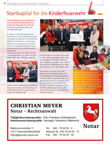 Mattenmoorstraße 11 Tel 040 - - 79 00 50 - - 0 0 0 0 0 0 21217 Seevetal-Meckelfeld Notariat Tel 040 79 00 50 - - 13 office@kanzlei-meyer net Fax 040 - - - 79 00 50 50 - - - 50 50 Notar Fotos: Dennis Hamann