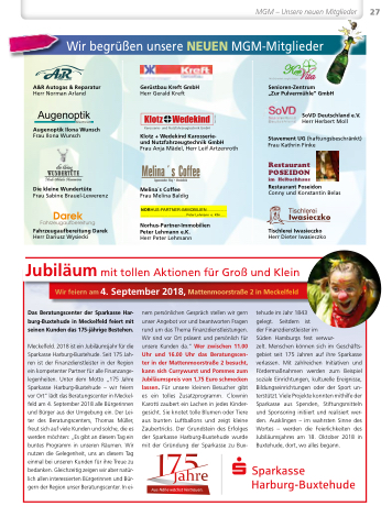 2018 ist ein Jubiläumsjahr für die Sparkasse Harburg-Buxtehude Seit 175 Jah- ren ist ist der der Finanzdienstleister in in der der Region ein kompetenter Partner für alle Finanzange- legenheiten Unter dem Motto „175 Jahre Sparkasse Harburg-Buxtehude – wir feiern vor Ort“ lädt das Beratungscenter in Meckel- feld
