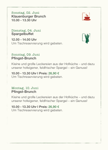 Klauenburger Brunch 10.00 - 13.30 Uhr