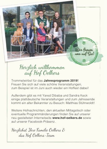 Weitere Hofnachrichten, den aktuellen Mittagstisch oder eventuelle Programmänderungen nden Sie auf unserer neu gestalteten Internetseite www.hof-oelkers.de sowie auf unserer Facebook-Präsenz.