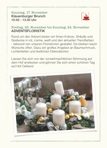Lassen Sie sich von der vorweihnachtlichen Stimmung auf dem Hof anstecken und gönnen Sie sich einen schönen Tag auf Hof Oelkers!